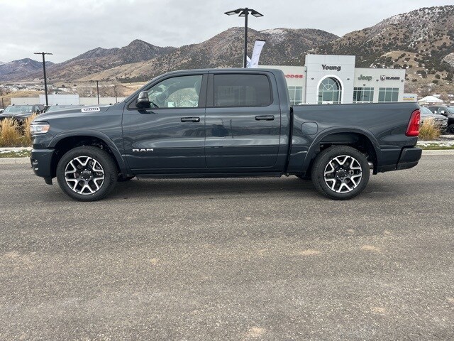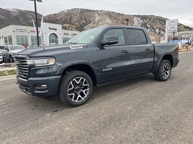 2026 Ram 1500 Forged Blue Metallic Laramie 4WD 8-Speed Automatic 3.0L I6 To Qualify for the Young Dodge Morgan Best Price, customer must use Young Dodge Dealer Financing. Dealer is to arrange Financing. Cannot be combined with any other offers or discounts. Not all buyers will qualify for available offers, incentives or discounts based on Credit, Trade, Model, Zip Code, etc. Young Dodge Best Price does not include Taxes, States Fees, Registration Fees, Dealer Fees, or any Dealer Installed Accessories. Not all Customer will qualify. Contact dealer for details. Price includes: $3500 - 2026 National Retail Consumer Cash . Exp. 01/05/2026