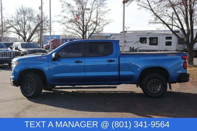 If you believe Trail Boss trucks only exist to fling mud at pristine driveways and scare sedans out of the fast lane, this one proudly wears that badge of honor. New Price makes this 2024 Chevrolet Silverado 1500 LT Trail Boss an even more compelling option for drivers who want rugged capability with real value. Powered by an efficient yet capable 3.0L I6 engine and equipped with 4WD, this truck is built to perform in a wide range of driving conditions. The odometer is 11,737 miles below market average, giving you extra peace of mind and extended life ahead. Finished in eye-catching Glacier Blue Metallic, it delivers bold style that stands out without trying too hard. Whether tackling rough terrain or daily commutes, this Silverado balances toughness with modern drivability.