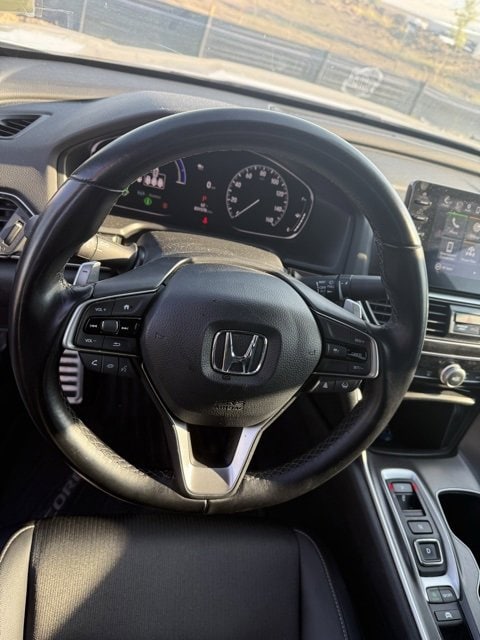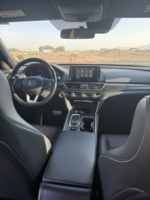 On the outside, the sleek Gray finish is accented by bold Sport styling cues that set it apart from the crowd. Inside, you'll find the Accords spacious and refined cabin designed around driver comfort and convenience. As a Sport trim, it comes with upgraded touches like sport seats, paddle shifters, and a leather-wrapped steering wheel, striking a perfect balance between athletic and practical.